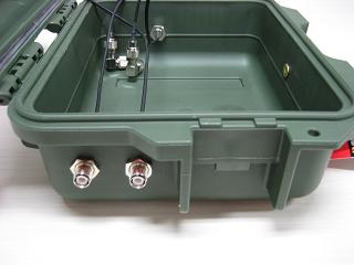 - 内蔵するRMRやバッテリーと干渉しない位置にします。ケース内側にアンテナケーブルのコネクターが出っ張ります。